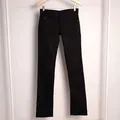 Very good condition, warna hitam pekat ga ada defect ya kak, seperti baru, bahan jeans tebal tidak stretch, silakan geser slide foto untuk detail ya kak LP= 76cm P= 55cm (Note: LP= Lingkar pinggang, P=Panjang celana)