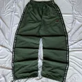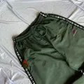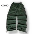 Celana track pants CONIO berwarna hijau tentara (olive green) dengan logo kecil di paha, baggy pants bahan tebal 2 layer