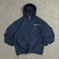 Champion Cagoule Packable Jacket (Bisa jadi tas) Size : M fit L P x L : 68 x 56 Condition : 8.5/10 Minus : ada crack tipis overall masih oke Harga : 239.000 Unisex (Cewek-Cowok bisa pakai)