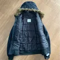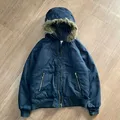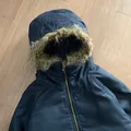 Solid black colour,fur hooded,medium weight material,2pocket front,very good condition.