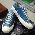 Model: Chuck 70 Ox (low-top) Warna: Gabungan dari tiga corak denim (gelap. sedang, dan terang) Kode Gaya: 1662870