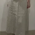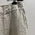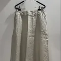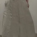 Cream Beige Loose Linen Skirt with Side Buttons