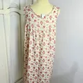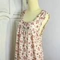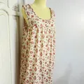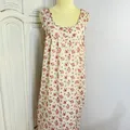 Cream Red Floral Print Sleeveless Nightgown Vintage