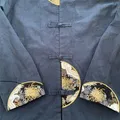 Crescent Moon Embroidered Navy Cheongsam Long Sleeve Shirt Size XLarge Length : 72cm Waist : 58cm Great Condition!