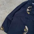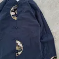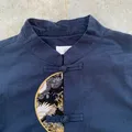 Crescent Moon Embroidered Navy Cheongsam Long Sleeve Shirt