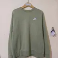 Item : crewneck nike club small logo warna jarang warna : hijau minyak Size : L PxL : 69 × 63 cm (toleransi ukuran 2 cm saat di tarik) Kondisi : 95% Full tags Minus : noda sudah di cuci siap pakai dan jual