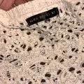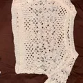 Terbuat dari bahan rajutan (knit) dengan teknik rajut terbuka (open-knit atau pointelle).