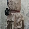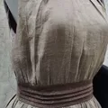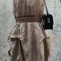 💖 Bahan Linen Blend: Memberikan tekstur alami dan kesan mewah. 💖 Aksen Pinggang Smock Cokelat: Memberi definisi pinggang dan siluet tubuh yang ramping. 💖 Rok Asimetris Kerut (Drapery)