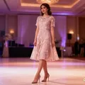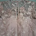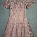 LD 72cm, lingkar perut 60cm, pjg lengan 22cm, pjg dress 85cm, ada kancing dan risleting di belakang, kanan kiri atas ada kawat lunak, cocok utk acara pesta, contoh baju terpakai hanya AI