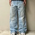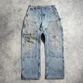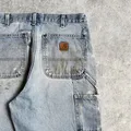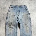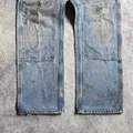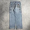 Explore the rugged style of vintage Carhartt double knee pants, Made in Mexico with durable canvas material. These iconic workwear pants feature a dungaree fit, making them perfect for any occasion. The faded denim color, and double knee design add a touch of classic style.
