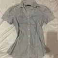 Fitted Blue White Stripes Puff Sleeve Button Up Shirt