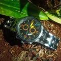 - Fitur: Stopwatch (Chronograph), Tanggal aktif, dan Tachymeter.