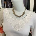 ribbed knit with delicate floral lace neckline — subtle but charming.