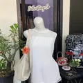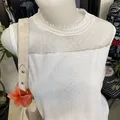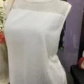 ⤷ Vintage sleeveless top warna putih dengan detail mesh dotted dan lace tipis di bagian hem.