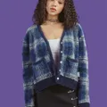 Obsessed with this fuzzy vibrant blue checkered cardigan! 💙 It has the softest mohair-like texture and a flattering oversized boxy fit. Perfect for layering over a dress or pairing with your favorite denim