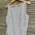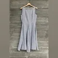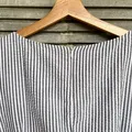 KODE : G258 Dress Midi A Line Bahan Katun Wrinkle Tidak Stretch Motif Salur Putih Abu LD = 92 LP = 74 PJ = 101 (Sebetis)