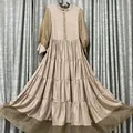 gaun maxi berjenjang dengan siluet A-line