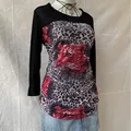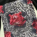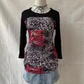 Glitter & beaded semi mesh leopard top