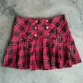 Gold button and diamond detail plaid mini skirt