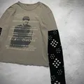 ݁ᛪ༙ Graphics double layered t-shirt ᛪ༙ large ( 65x55 ) 𖤐 price : 125k used 𖤝 Dm for access