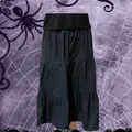 Grunge Goth Emo Black Tiered Midi Skirt