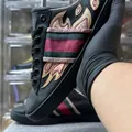 GUCCI ACE FLAME BLACK LEATHER SNEAKERS MEN’S Made In Made Italy 🇮🇹 Size : US 9.5 UK 8.5 EUR 43 ( 27.5 CM ) Nomor Seri ✅✅✅ Embosed Insole Monogram ✅✅✅ OG Insole ✅✅✅