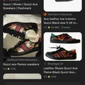GUCCI ACE FLAME BLACK LEATHER SNEAKERS MEN’S , GUCCI ACE FLA
