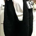 bahan rajut wool gliter mix kulit. inner satin. satu ruang utama. satu poket ziper di dalam. muat laptop. ukuran 40x50cm. good condition preloved. free gift.