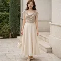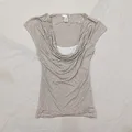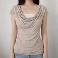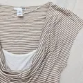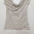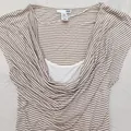 Atasan H&M stripe warna beige dengan detail drapery cowl neck yang soft dan feminin 🤍