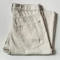 H&M WIDE JEANS BROKEN WHITE SIZE FIT 32. LINGKAR PINGGANG 88 PANJANG 103 OPEN LEG 25 (CM). GOOD CONDITION 8/10 MINUS PEMAKAIAN AJA BAGIAN BAWAH KAKI ADA KIKIS SEDIKIT BANGET TAPI TIDAK SAMPAI ROBEK SEPERTI DI FOTO. SELEBIHNYA AMAN