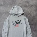 H&M x NASA Graphic Fine Knit Hoodie - Light Grey Ukuran : M Panjang : 65 cm Lebar : 47 cm Kondisi : Sangat bagus - TIDAK ADA MINUS🫶 Deskripsi : 100% Katun | Made in Bangladesh | Sablon grafis NASA
