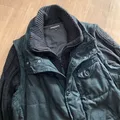 Solid black colour,features knit sleeve detachable system with zipper,padded body material,with 4pocket front,2way zipper and button function good,no flaws
