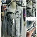 Hoodie jeans mix fleece unisex ld 120 model Zipper dan kancing bagian bawah badan dan lengan model unfinish cutting sudah laundry