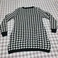 Tampil elegan, berkelas, dan vintage chic dengan mini dress atau tunic rajut yang didominasi oleh motif ikonik Houndstooth hitam-putih. Potongan yang effortlessly stylish menjadikannya pilihan sempurna untuk gaya formal maupun santai berkelas.