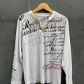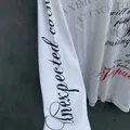 - Motif tulisan artistik di bagian depan dan lengan
