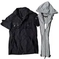 Intheattic short sleve button up shirt With hoodie Size medium Good condition