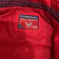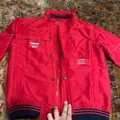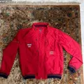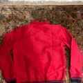 Jaket bomber cardinal warna merah, bahan polyester, ada lining dan kantong di bagian dalam jacket, jarang pake, masih bagus bgt Utk kids 12 thn Ling dada : 96 Panjang baju : 54