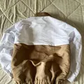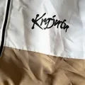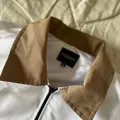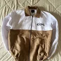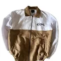 jaket coklat perpaduan putih dengan ukuran XL