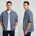 Jaket kemeja pendek ziper kotak biru
