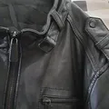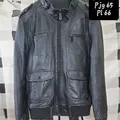 Jaket Kulit Asli dari Basic House model bomber kantong 4 dan kerah gesper, Ld 110 ( setara L ) , Bahu 45, Pjg 65, Pl 66, harga 600rb, lokasi Jakarta Selatan.
