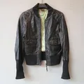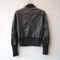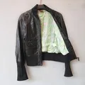 Jaket kulit asli domba bomber vintage cewek crop biker cropp