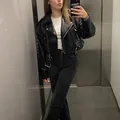Jaket Kulit Ramones Wanita Hitam Crop