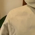 Bahan tebal warna putih Ld : 114Cm Pj : 70Cm kondisi 90% (ada noda di bagian lengan dan bahu, detail noda di slide ke 6&7)