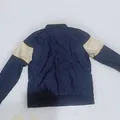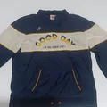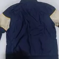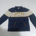 Fitur: Colorblock biru dongker, putih, dan kuning; logo ayam jantan; saku fungsional