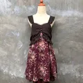 Japanese Axes Femme Burgundy Fairy Style Women Midi Dress Condition 9/10 Polyester Material Size M (Check Measurements) No Flaws Chest : 40 cm Length : 65 cm Happy Shopping