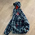 Plaid motive,wool material,adjustable hood & waist,no flaws,very good condition