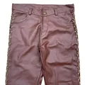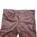 Faux Leather Pants Cowboy Style Side Rope Unique Gothic Synthetic leather , unique, 1o1, Low Rise, NO BRAND Size 30-32 Waist 32inch/82cm Inseam 32inch/82cm Length 105cm Open leg 17cm Crotch/front rise 10inch/25cm