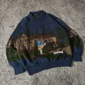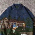 * vintage halfbutton JOSEPH MYERCHIN golf landscape pattern knitwear