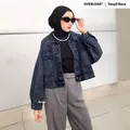 JINISO Jaket Crop Jeans Oversized Black Acid All Size