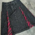 Jour aux echecs plaid denim skirt